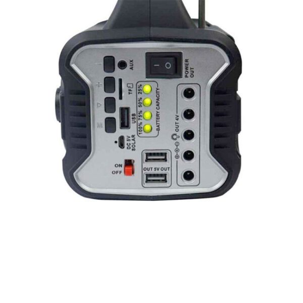 متاسفانه این کالا در حال حاضر موجود نیست. میتوانید از طریق لیست بالای صفحه، از محصولات مشابه این کالا دیدن نمایید.چراغ اضطراری و پاوربانک و اسپیکر دیگ کینگ مدل DK-801SL که از تولیدات برند معتبر و شناخته شده Deep king می باشد. این دستگاه مجموعه کاملی برای استفاده در پیک نیک و یا استفاده در باغ و جایی که برق شهر در دسترس نیست بوده و با امکاناتی از قبیل رادیو و امکان پخش فایل های صوتی با فلش مموری و کارت حافظه SD ، باعث عدم نیاز به دستگاههای متعدد در سفر می شود . این مجموعه دارای 4 لامپ ال ای دی با سیم 3 متری می باشد که می توان فضای نسبتا وسیعی را با آنها و با سیم های بلندشان روشن کرد .این دستگاه دارای یک صفحه خورشیدی با کیفیت جهت شارژ دستگاه در مواقع اضطراری که به برق شهر دسترسی نیست می باشد. برای شارژ موبایل و تبلت نیز می توانید از کابل رابط شارژ داخل این پک که برای موبایل های متفاوت مناسب است و اتصال به قسمت خروجی USB ، استفاده کنید.